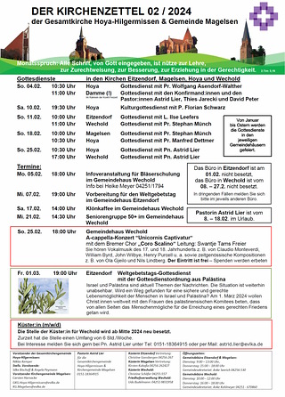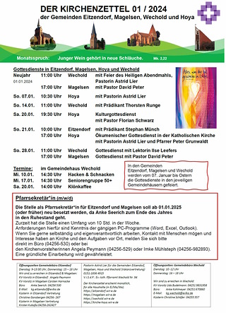 Die Stelle als Pfarrsekretär*in für Eitzendorf und Magelsen soll ab 01.01.2025 (oder früher) neu besetzt werden, da Anke Seerich zum Ende des Jahres in den Ruhestand geht.