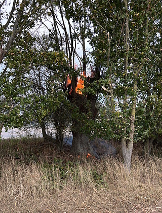 Aus noch ungeklärter Ursache geriet am Freitag Nachmittag in der Gemarkung Wienbergen, nahe dem Kraftwerk, ein Eschenbaum in Brand. Ein Landwirt wurde auf das Feuer aufmerksam und alarmierte die Feuerwehr. Durch den schnellen und umsichtigen Einsatz der Feuerwehrkräfte konnte ein größerer Flächenbrand verhindert werden. Mit rund 4000 Liter Wasser aus dem Wienberger Tanklöschfahrzeug wurde der sich schon im Vollbrand befindliche Baum gelöscht, und die Umgebung des Baumes großzügig gewässert werden. Nach einer Stunde war der Einsatz für die fünf Brandschützer beendet.