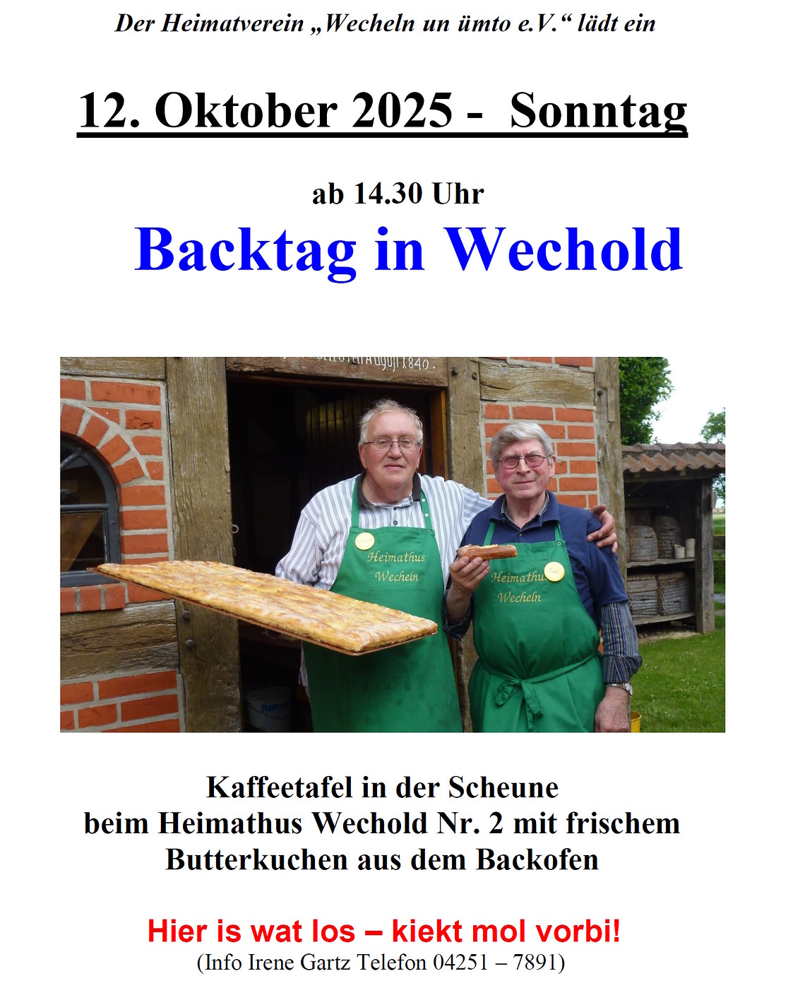 Backtag im Heimathus Wechold am 12.10.2025 (ab 14:30 Uhr)