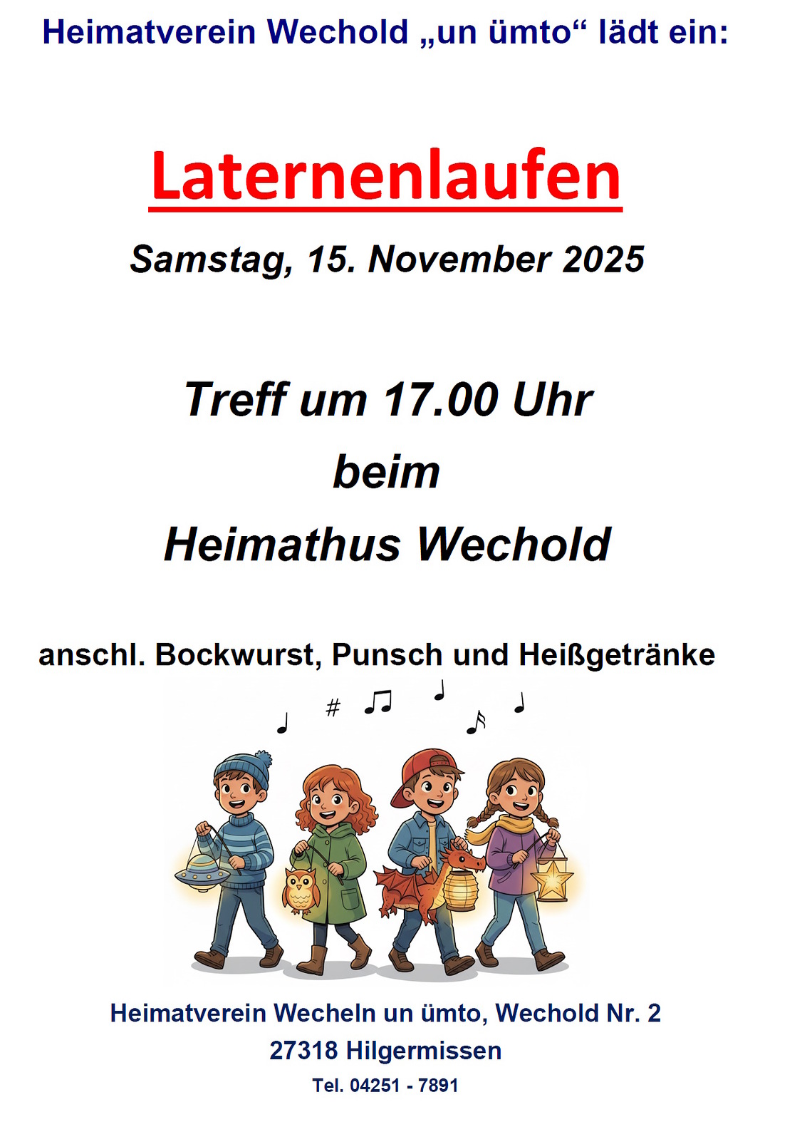 Treff um 17.00 Uhr beim Heimathus Wechold