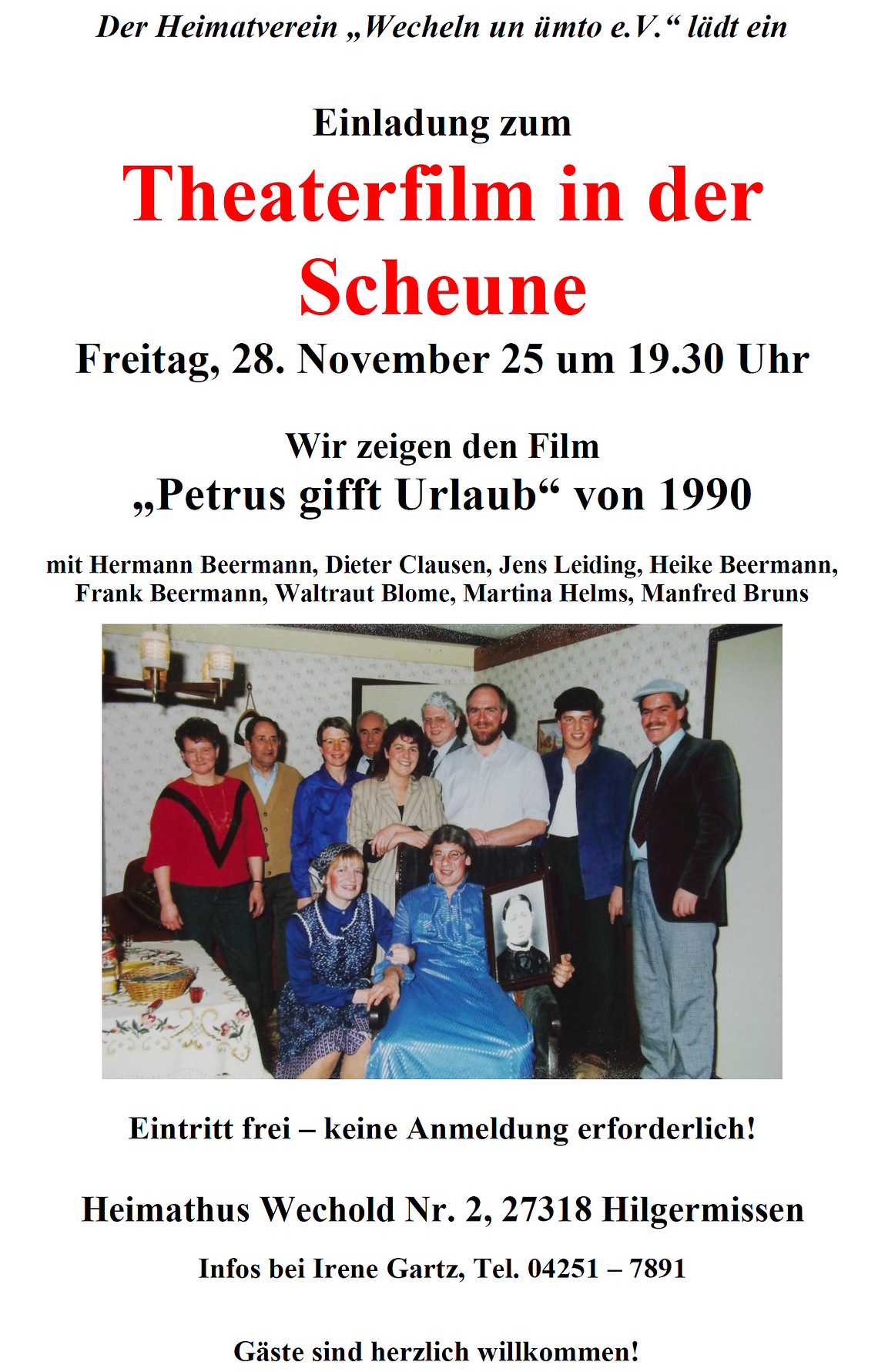 Infos bei Irene Gartz, Tel. 04251 – 7891